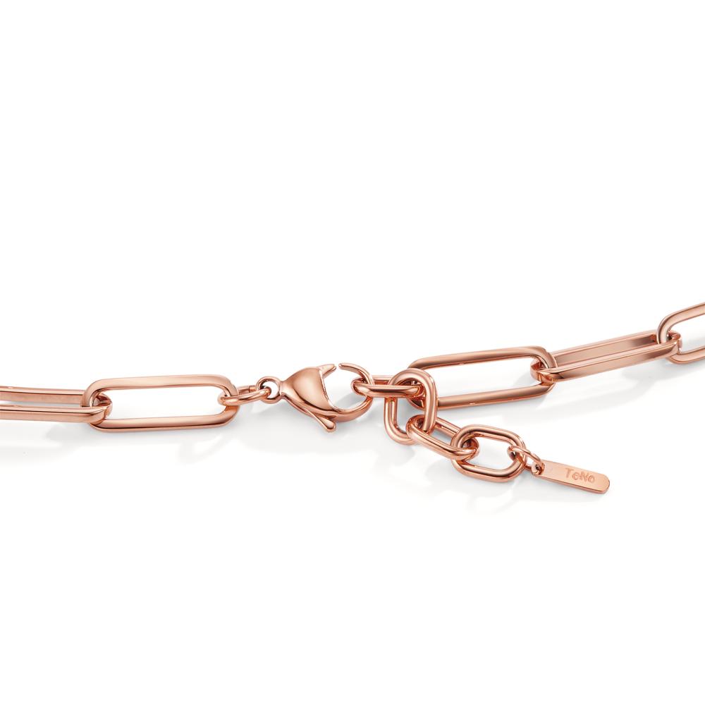 Elegantes Damen Collier aus hochwertigem Edelstahl in modischer Roségold-Optik. Die rechteckigen Glieder verleihen dem Schmuckstück einen modernen und zeitlosen Look. Perfekt für Alltag und besondere Anlässe, hypoallergen und langlebig. Ein Must-Have für stilbewusste Frauen.