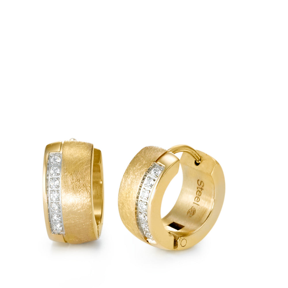 Klappcreolen Edelstahl Zirkonia 14 Steine gelb IP beschichtet