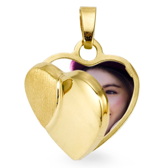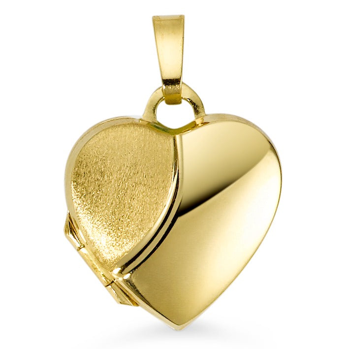 Zeitloses Damen Medaillon aus hochwertigem 375er Gelbgold in Herzform. Perfekt, um kleine Erinnerungen oder Fotos stilvoll nah am Herzen zu tragen. Elegantes, glänzendes Design kombiniert mit einer feinen, satinierten Oberfläche. Ein edles Schmuckstück für jeden Anlass.