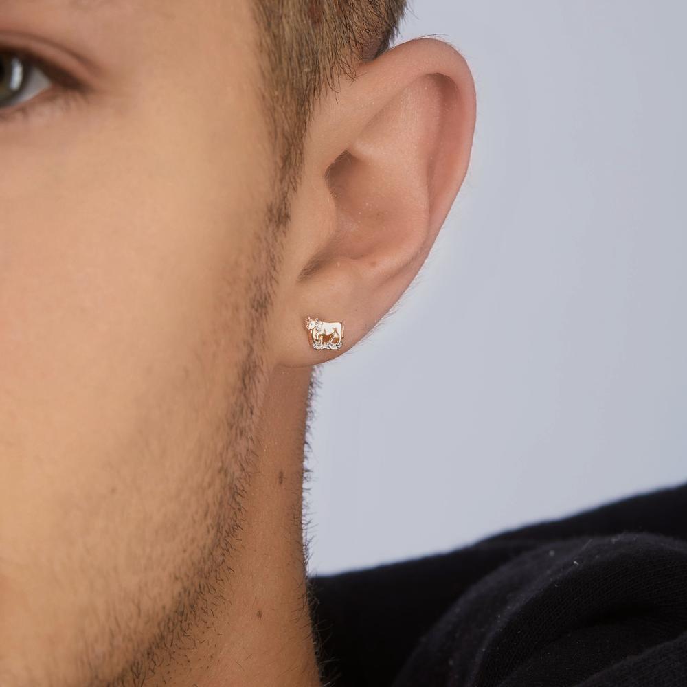 Eleganter Herren-Ohrstecker aus 375er Gelbgold mit detailreicher Kuh-Motivgestaltung. Ein dezenter und einzigartiger Akzent für jeden Tag, der Naturverbundenheit und Stil vereint. Perfekt für Herren, die Individualität und edles Design schätzen.