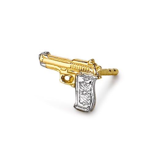 Dieser Herren-Ohrstecker in Form einer Pistole kombiniert 750er Gelbgold mit silberfarbenen Akzenten für ein markantes Design. Ein einzigartiges Accessoire für selbstbewusste Männer, die auffälligen Schmuck mit Charakter schätzen. Nur 1 Stück im Shop erhältlich.