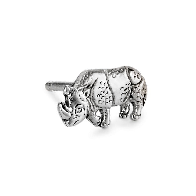 Stylischer Herren Ohrstecker aus hochwertigem Silber in Form eines Nashorns. Das detailreich gestaltete Design verleiht jedem Look eine individuelle Note. Ideal für alle, die markante und einzigartige Accessoires lieben. Einzeln getragen ein echter Hingucker!