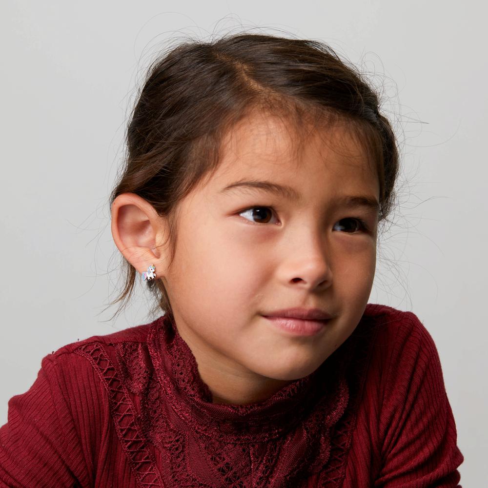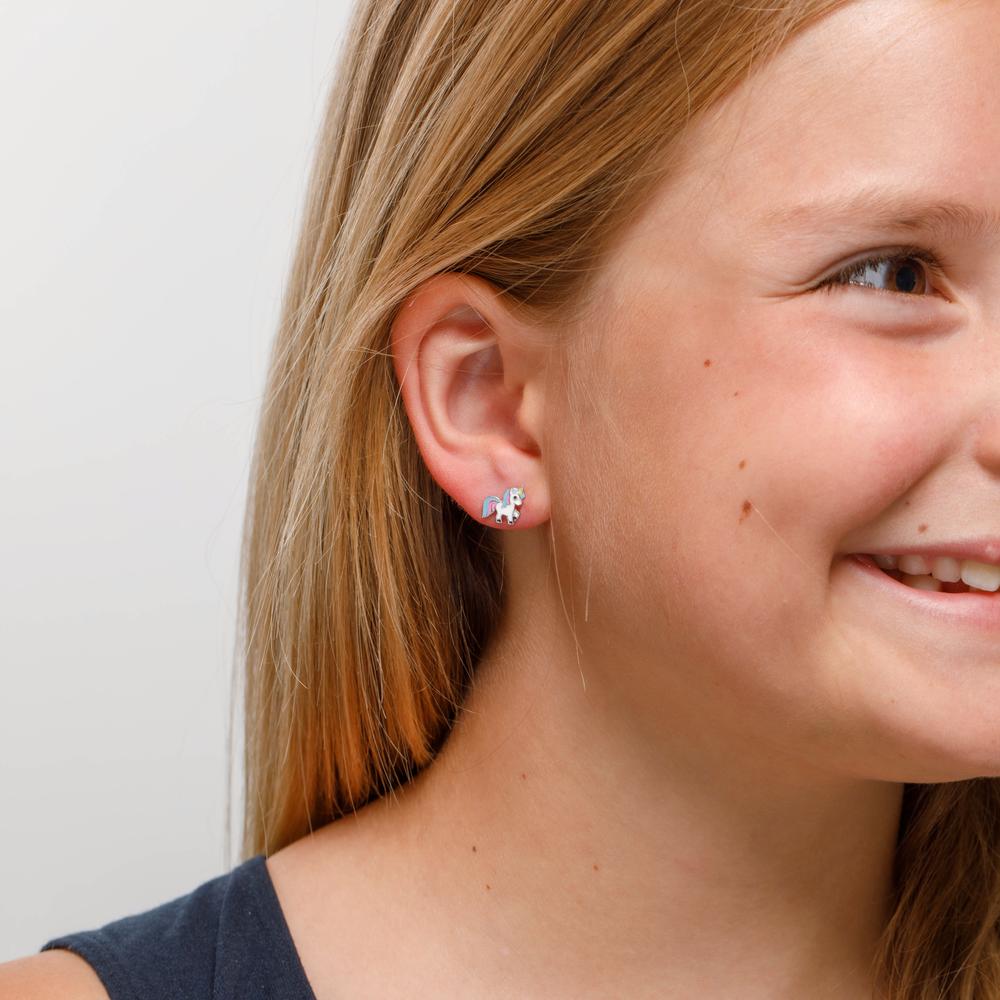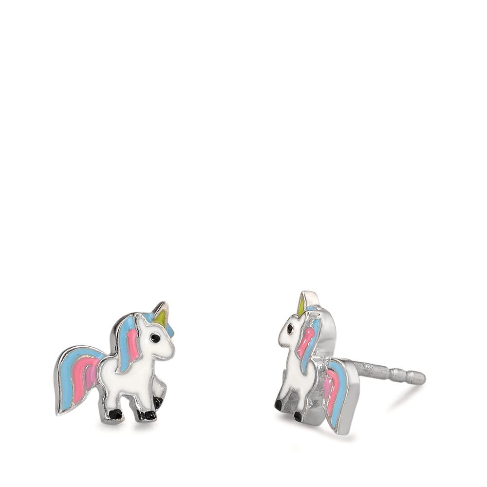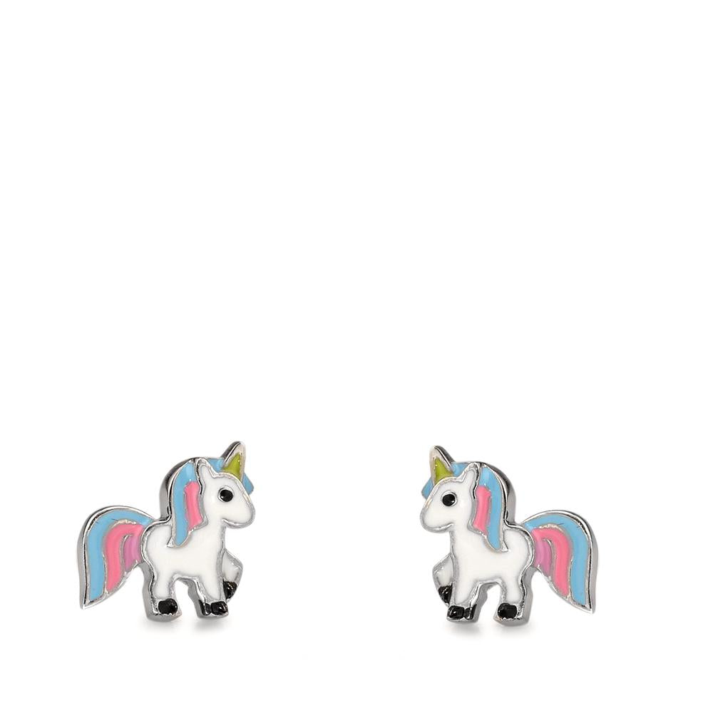 Zauberhafte Einhorn-Ohrstecker aus hochwertigem Silber, speziell für Mädchen. Bunt emailliert mit zarten Farben in Blau, Rosa und Grün, verleihen sie jedem Outfit einen märchenhaften Charme. Leicht und angenehm zu tragen – das perfekte Accessoire für kleine Einhorn-Fans.