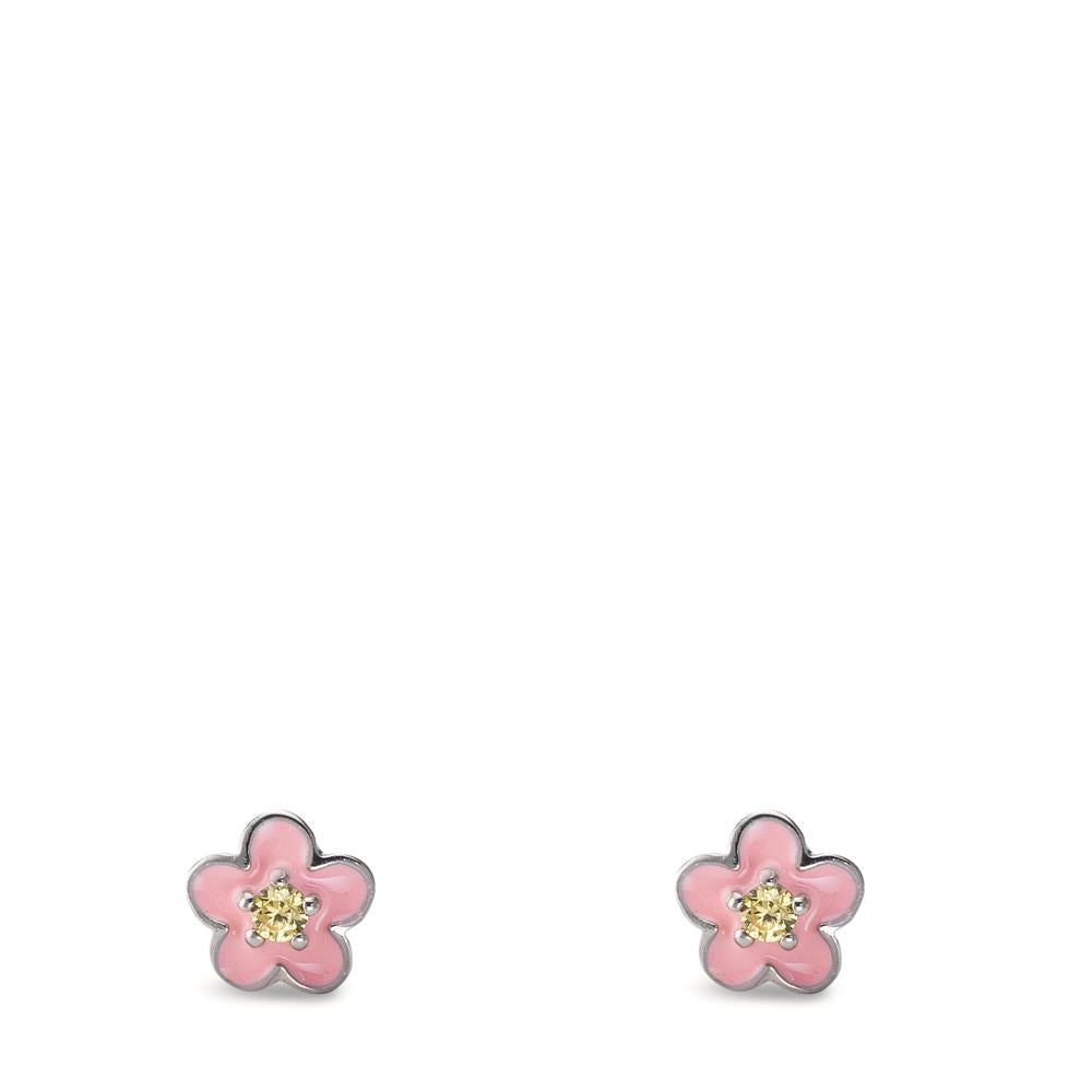 Ohrstecker Silber Zirkonia gelb, 2 Steine rhodiniert Blume Ø4.5 mm