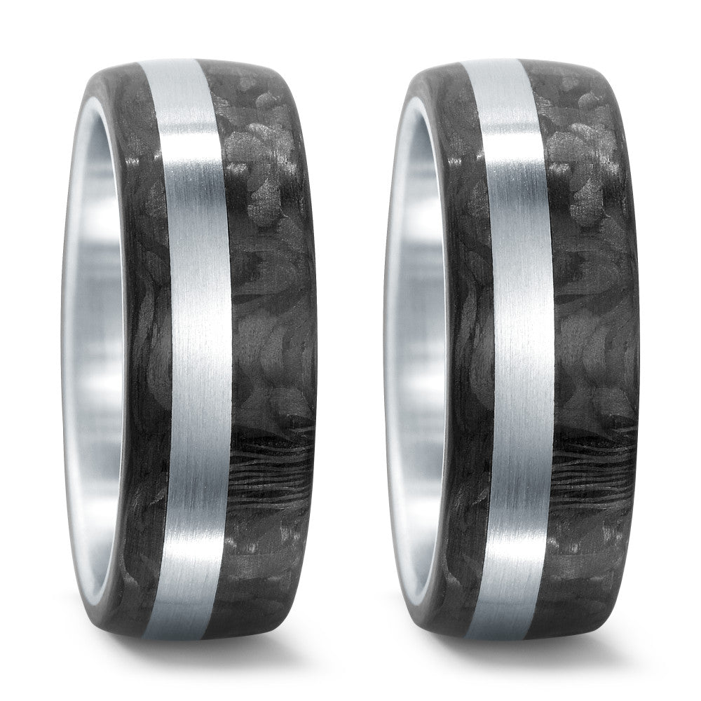 Moderner Partnerring aus hochwertigem Edelstahl und edlem Carbon. Die Kombination aus robustem Edelstahl und dem einzigartigen Carbon-Muster macht diesen Ring zum stilvollen Begleiter für jeden Tag. Perfekt für Paare, die Eleganz mit einem Hauch von Technik verbinden möchten.