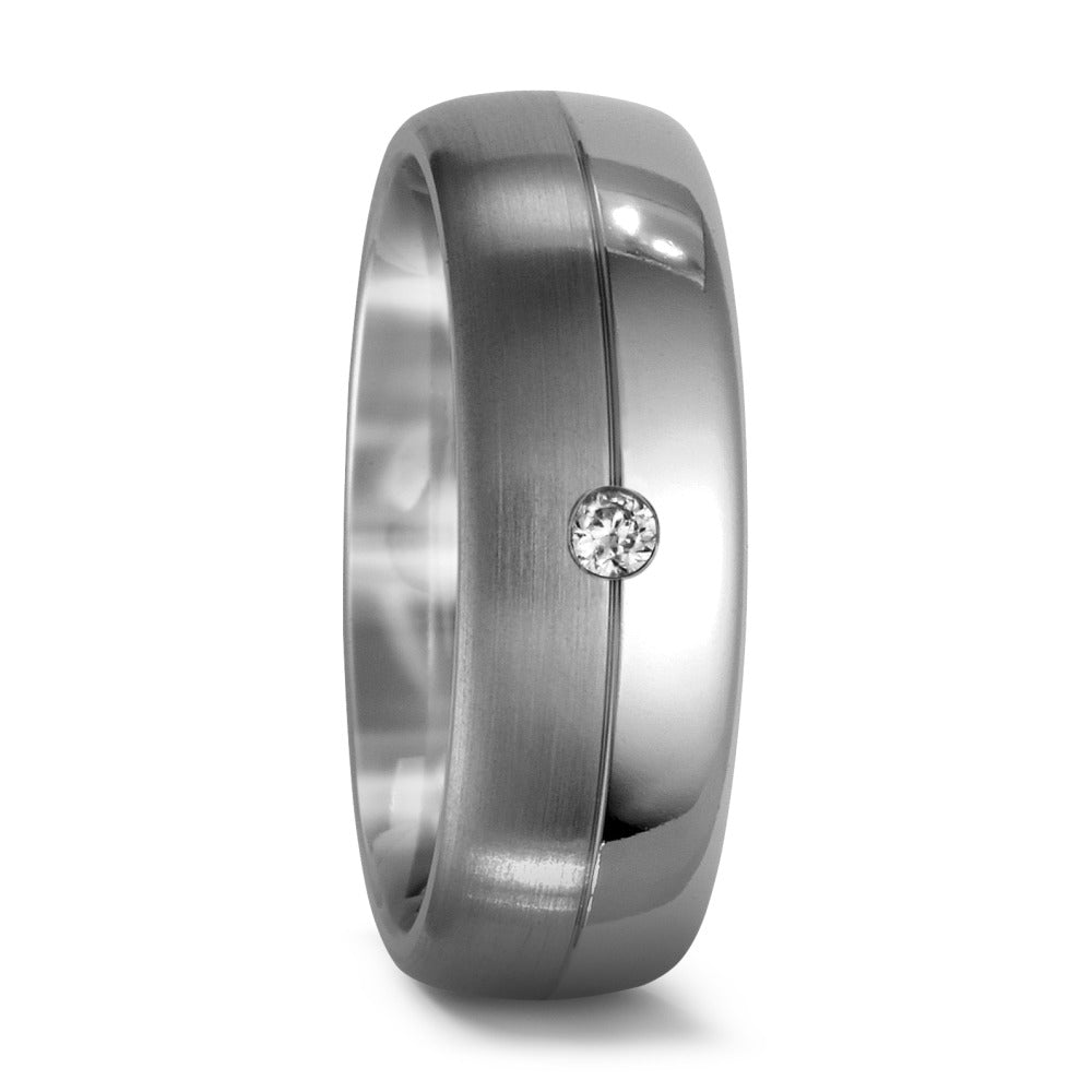 Moderner Damen Partnerring aus hochwertigem Titan mit mattem und poliertem Finish. Der funkelnde Diamant in der Mitte setzt einen eleganten Akzent und macht diesen Ring zum perfekten Symbol für Verbundenheit und Stil. Allergikerfreundlich und langlebig.