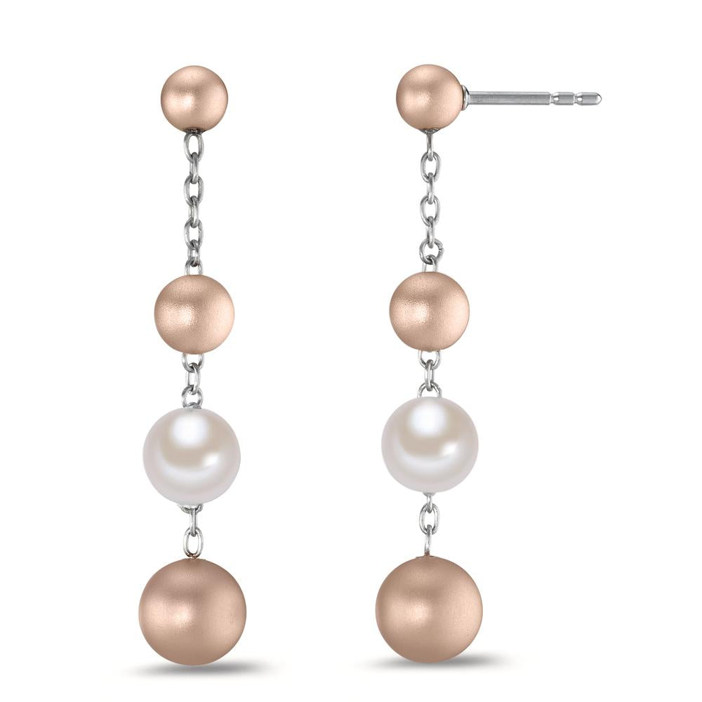 Perlohrhänger Arya aus Edelstahl mit Aluminium Light Rosé und weissen Muschelperlen, 45mm