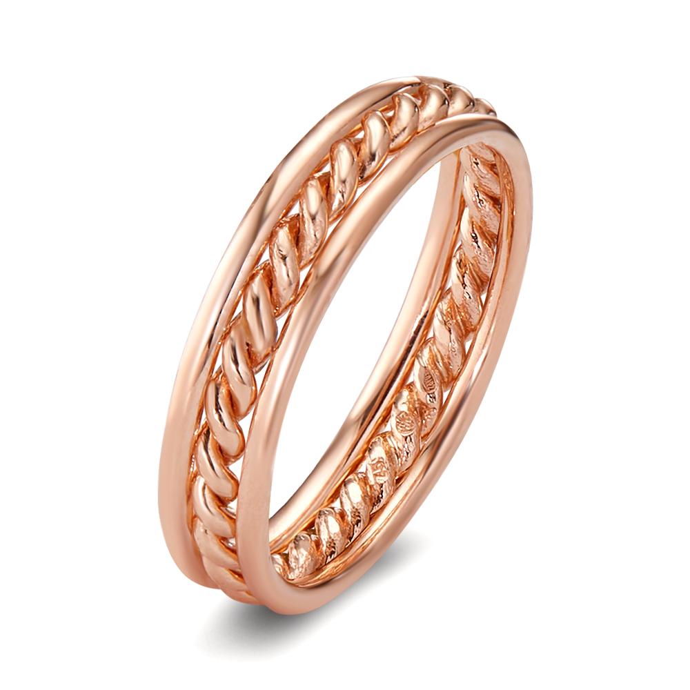 Eleganter Damen Fingerring aus hochwertigem 750er Rotgold. Das moderne Design mit gedrehter Mittelpartie vereint zeitlose Eleganz und außergewöhnlichen Stil. Perfekt als Geschenk oder für den täglichen Luxus. Ein Schmuckstück, das jeden Moment besonders macht.