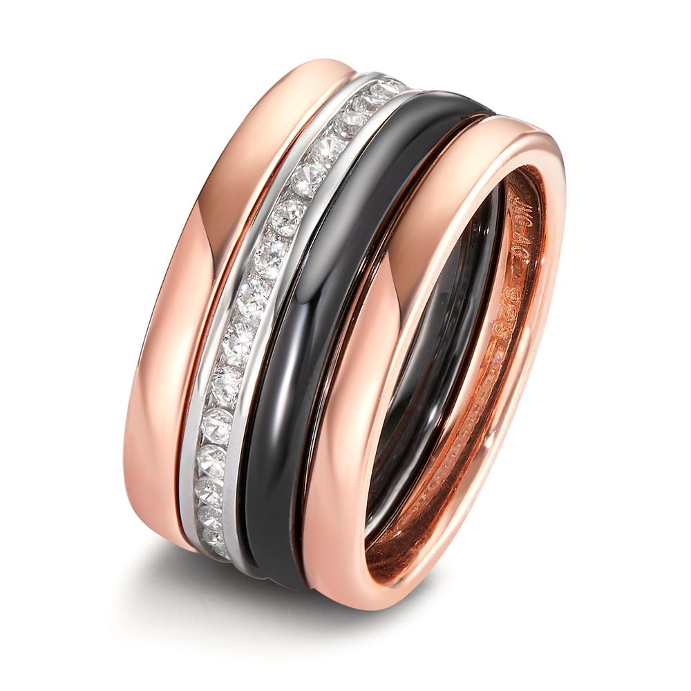 Eleganter Damen Fingerring aus hochwertigem Silber kombiniert mit schwarzer Keramik. Verziert mit funkelnden Zirkonia-Steinen, die dem Ring einen luxuriösen Glanz verleihen. Ein modernes Accessoire, das Stil und Raffinesse perfekt vereint – ideal für jeden Anlass.