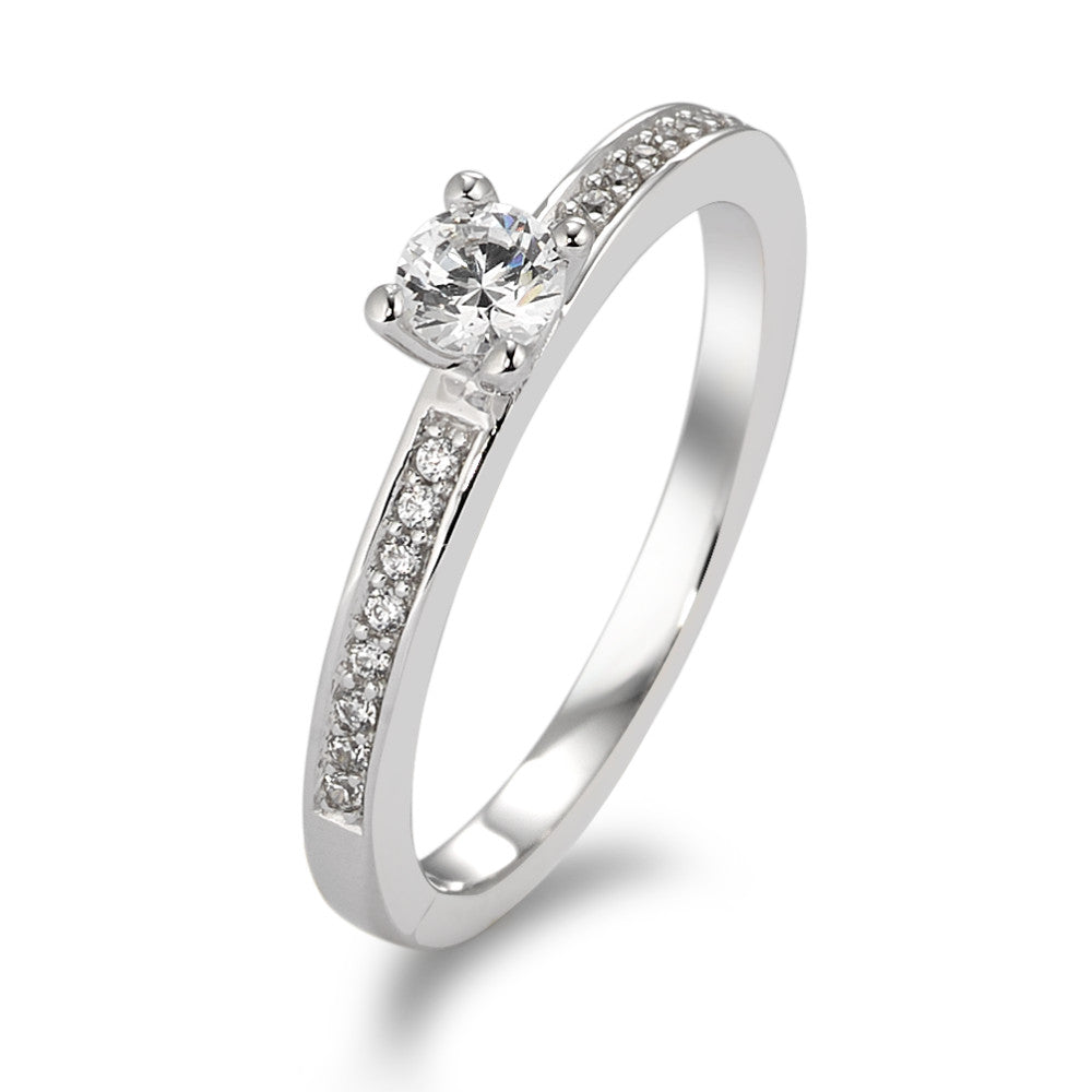 Solitär Ring 375/9 K Weissgold Zirkonia weiss, 17 Steine