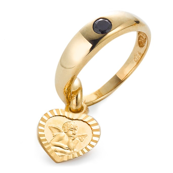 Zauberhafter Baby Taufring aus hochwertigem 750er Gelbgold mit funkelndem Saphir. Der Anhänger zeigt einen liebevollen Schutzengel in Herzform – ein symbolträchtiger Begleiter für den kleinen Schatz. Perfektes Geschenk zur Taufe und Erinnerung für die Ewigkeit.
